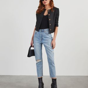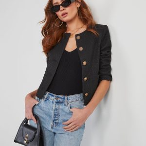 Designed with luxe, gold button closures and a structured fit, the Nolan Boucle Jacket is a versatile, capsule wardrobe essential. Its textured, bouclé-like fabric means you can easily dress it up or down. This jacket comes in a lightweight fit.