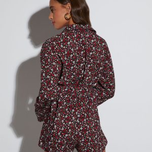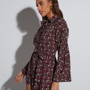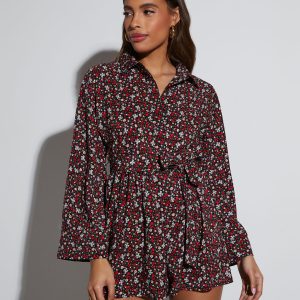 Day full of plans? Look and feel your best in the Angelina Printed Button Down Romper that features a collared neckline, adjustable waist tie, and long sleeves. Its vibrant, floral pattern ensures you’ll stand out.