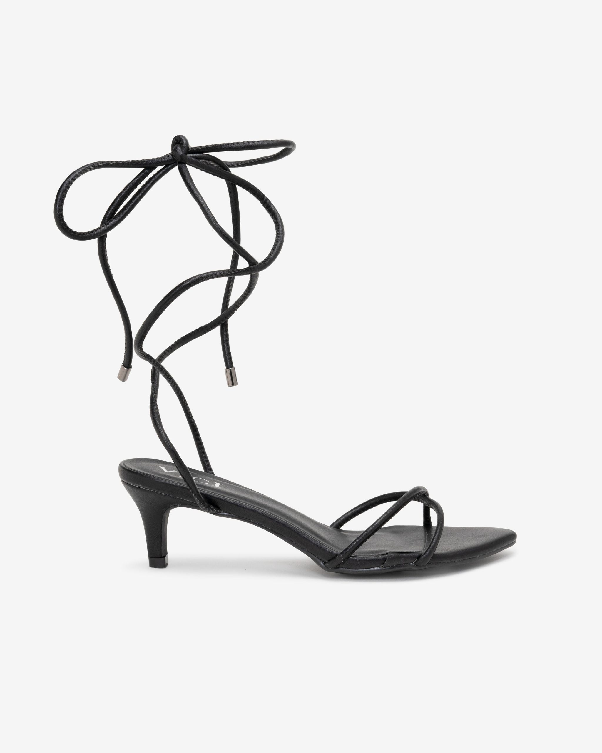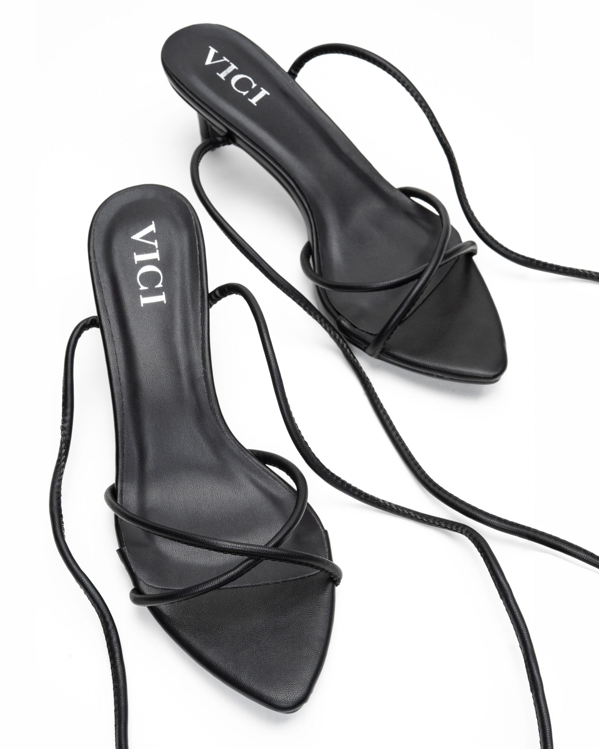 How chic and trendy are our Bella Faux Leather Strappy Kitten Heels? Give the stilettos a break with these faux leather kitten heels that have a pointed toe and an adorable wrap around ankle tie closure.