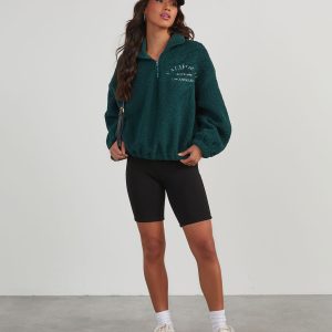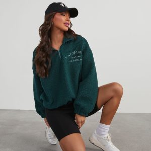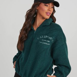 Cozy up on the go with the California Teddy Fleece Half Zip Jacket. It features a half zip neckline, drop shoulders, an elastic hem and an embroidered graphic that reads, “California Los Angeles Since 1850.” It’s warming but not too thick and looks great over a tank and biker shorts.