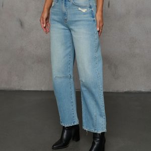 The Evangelina Distressed Barrel Jeans are a fresh take on timeless denim. With their relaxed barrel leg design and carefully placed light whiskering, these jeans offer the perfect mix of vintage charm and modern edge. Crafted from stretch denim, they provide all-day comfort while keeping your look effortlessly chic. The distressed details add just the right amount of character, making these jeans as unique as you are.
