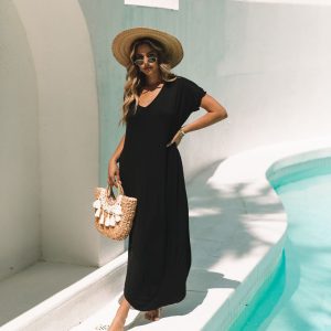 //Best Seller// Our Farmers Market Pocketed Modal Maxi Dress is Saturday morning inspired in it’s black hue with an easygoing fit and a stretchy body.
