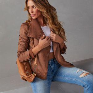 Be the first to review “Slick Chick Coated Faux Leather Moto Jacket”
