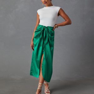 Be the first to review “Tea Time Satin Bow-Tie Midi Skirt”