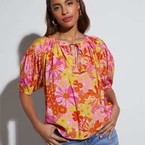 Be the first to review “Tropical Escape Floral Short Sleeve Blouse”